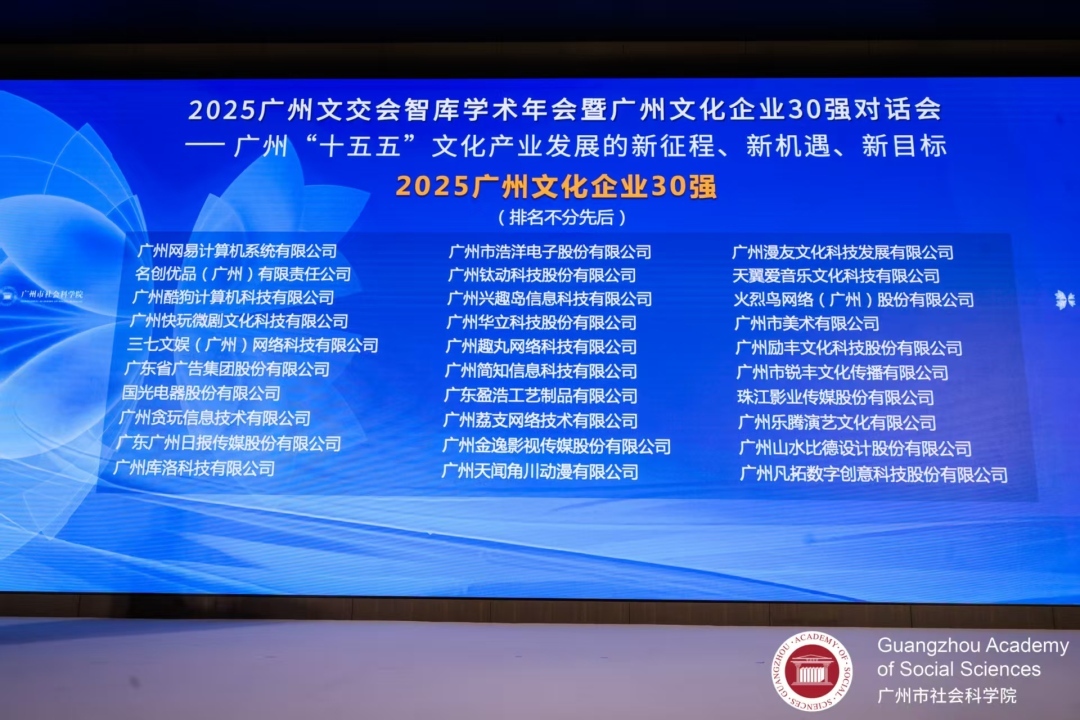 近日,“2025广州文交会智库学术年会暨广州文化企业30强对话会”在广交礼堂举行。