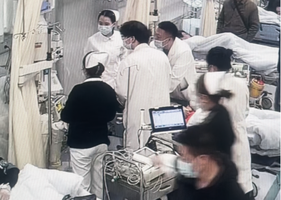 12月16日早晨8点40分支配,门诊部副主任陈虎和照顾部科照顾长刘志敏闻声而动,冲向现场。一位身着环卫责任服的男性面朝下倒地,情况不解。“其时来不足多念念,救东说念主第一。”陈虎回忆说念。